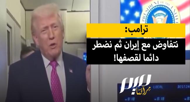 ترامب: "نبلي بلاء حسنا جدا في تلك المفاوضات، لكن مع إيران لا تعرف أبدا ما سيحدث، لأننا نتفاوض معهم ثم نضطر دائما لقصفهم."