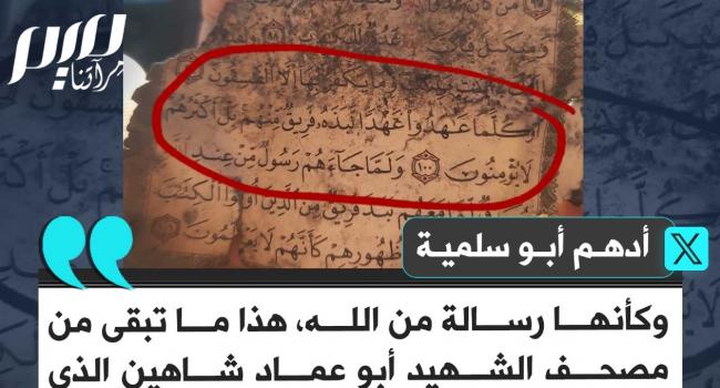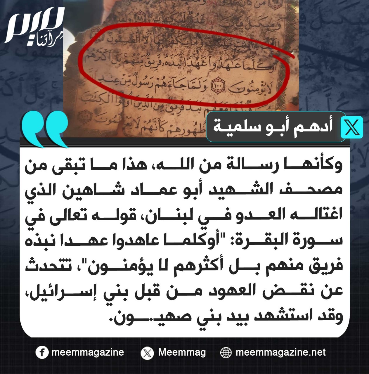 أبـو سلميـة: هذا ما تبقى من مصحف الشهيد أبو عماد شاهين الذي اغتاله العدو في لبنان!!