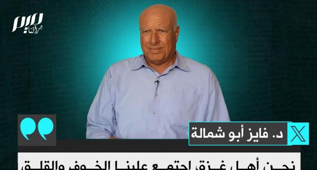 أبو شمالة: نحن أهل غزة، اجتمع علينا الخوف والقلق والحزن والنزوح والتعب والجوع والإرهاق النفسي والانتظار الممل، والإحساس بالظلم، والقهر من الخذلان، ولكننا ما زلنا نحارب اليأس، ونمتشق سلاح الأمل، ونثق بأن لهذا الكون ربٌ لا يمكن أن يكون ظالماً أو غافلاً.