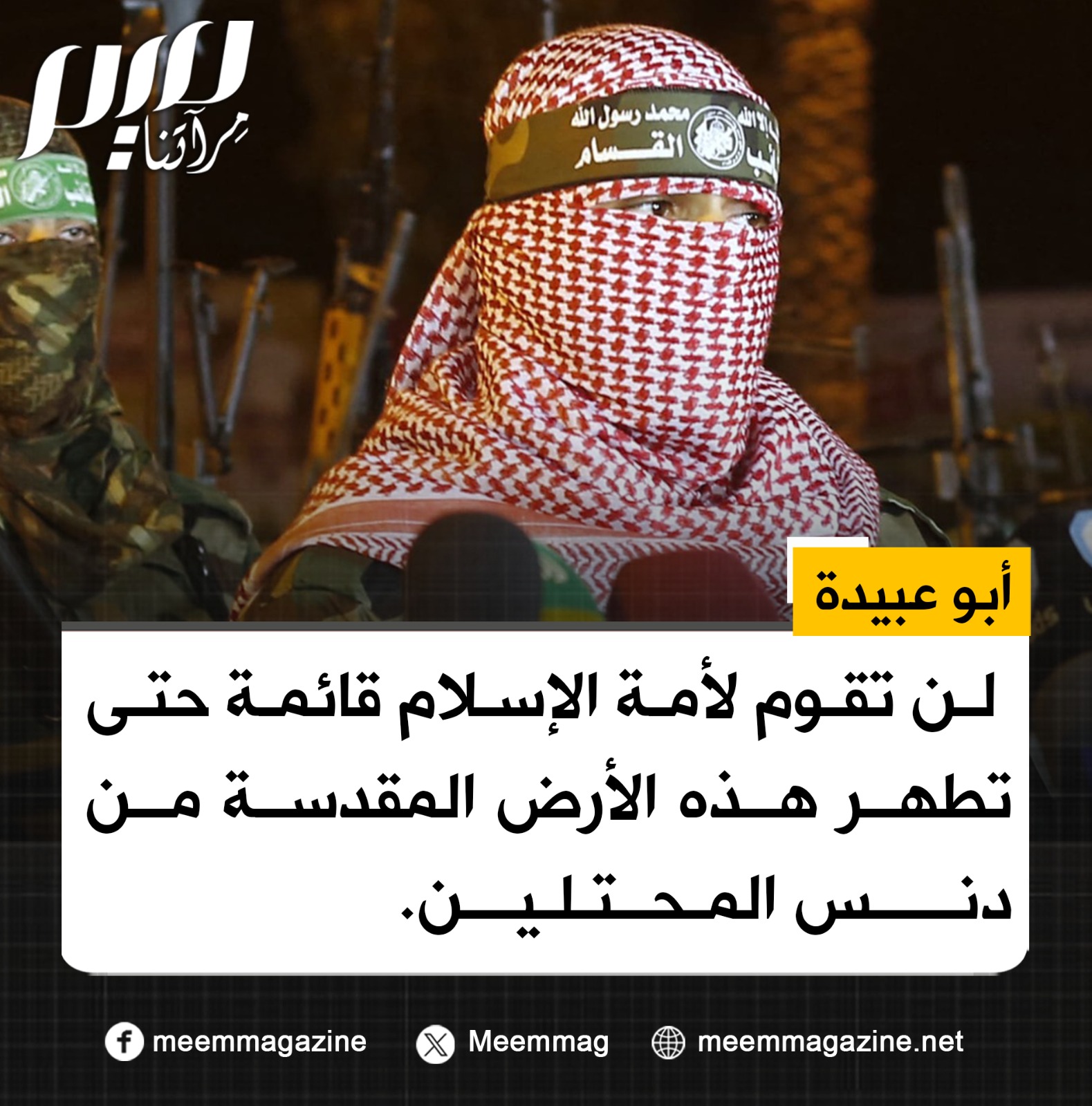 أبو عبيدة: لن تقوم لأمة الإسلام قائمة حتى تطهر هذه الأرض المقدسة من دنس المحتلين.