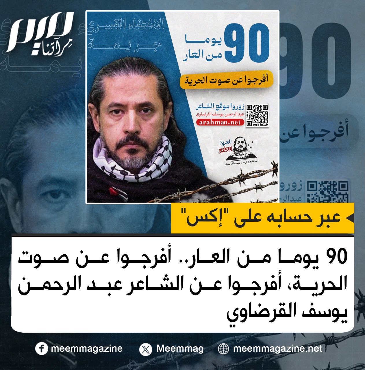 90 يوما من العار.. أفرجوا عن صوت الحرية، أفرجوا عن الشاعر عبد الرحمن يوسف القرضاوي.