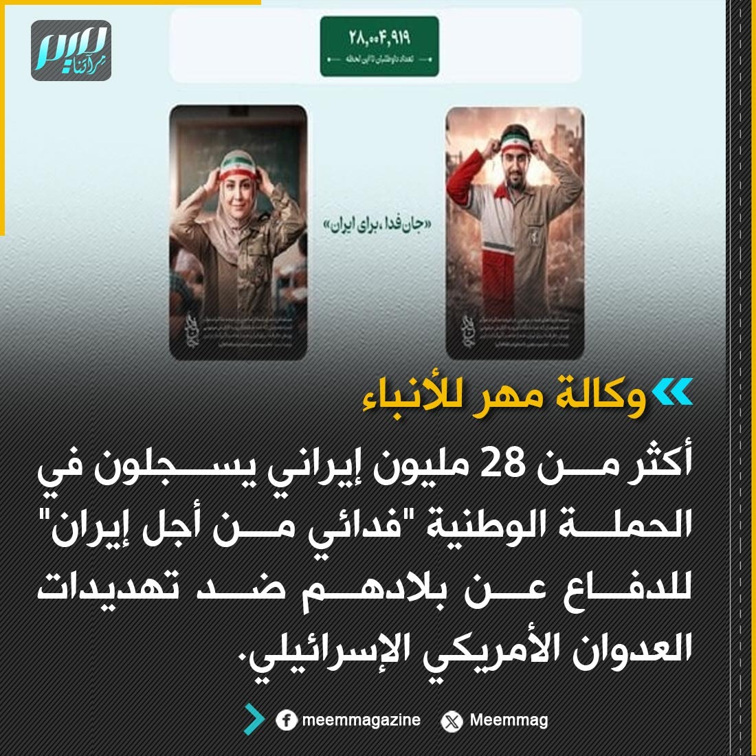 أكثر من 28 مليون إيراني يسجلون في الحملة الوطنية "فدائي من أجل إيران"