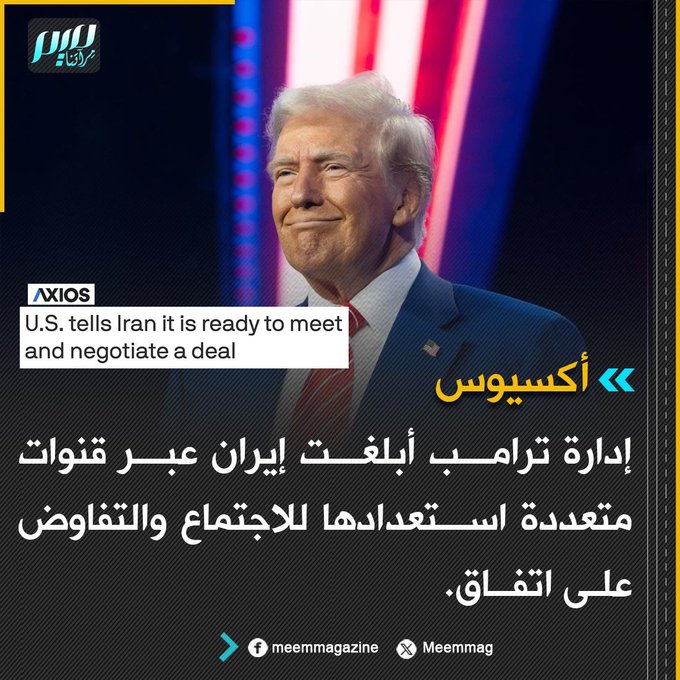 أكسيوس: إدارة ترامب أبلغت إيران عبر قنوات متعددة استعدادها للاجتماع والتفاوض على اتفاق.