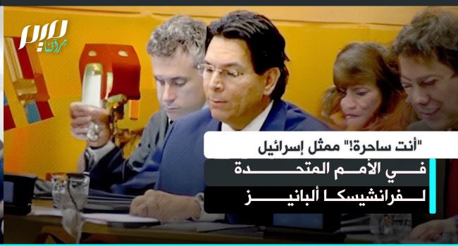 "سيدة ألبانيز، أنتِ ساحرة!" داني دانون، مندوب إسرائيل لدى الأمم المتحدة، يصف المقررة الأممية فرانشيسكا ألبانيز بالساحرة التي فشلت تعاويذها، ردا على تقريرها حول الإبادة الجماعية في غزة.