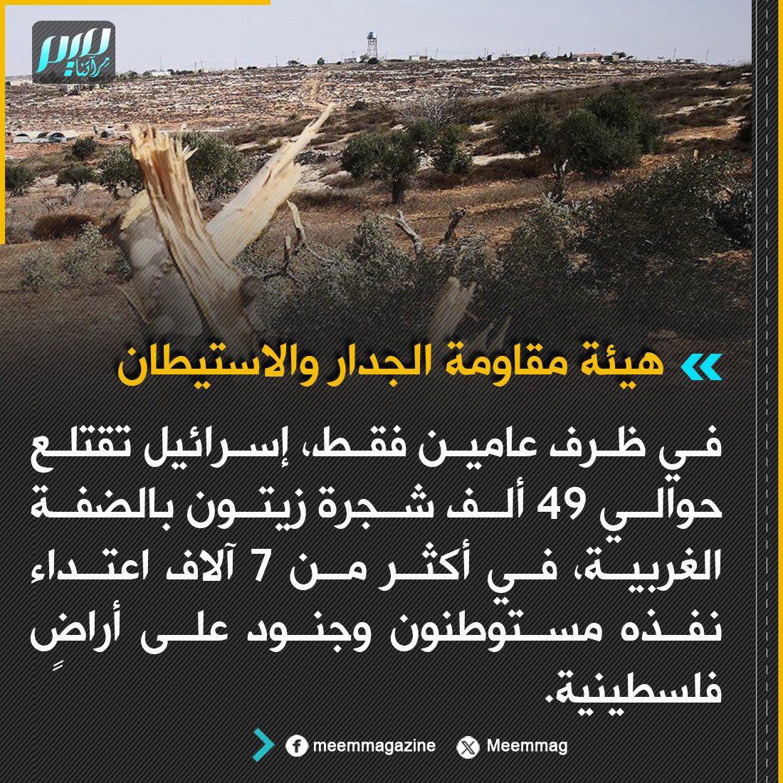هيئة مقـ ـاومة الجدار والاستيطان: إسرائيل تقتلع حوالي 49 ألف شجرة بالضفة الغربية في ظرف عامين فقط.