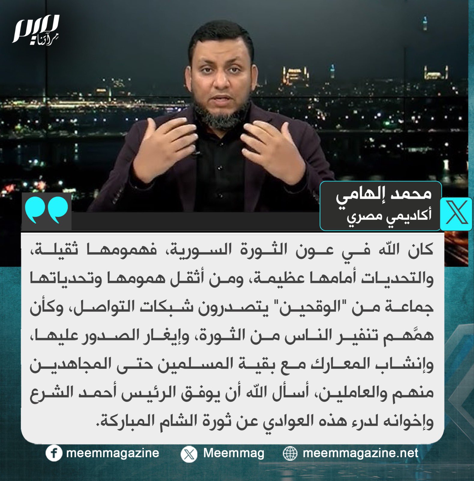 إلهامي: من أثقل هموم الثورة السورية المباركة وتحدياتها جماعة من "الوقحين" يتصدرون شبكات التواصل.