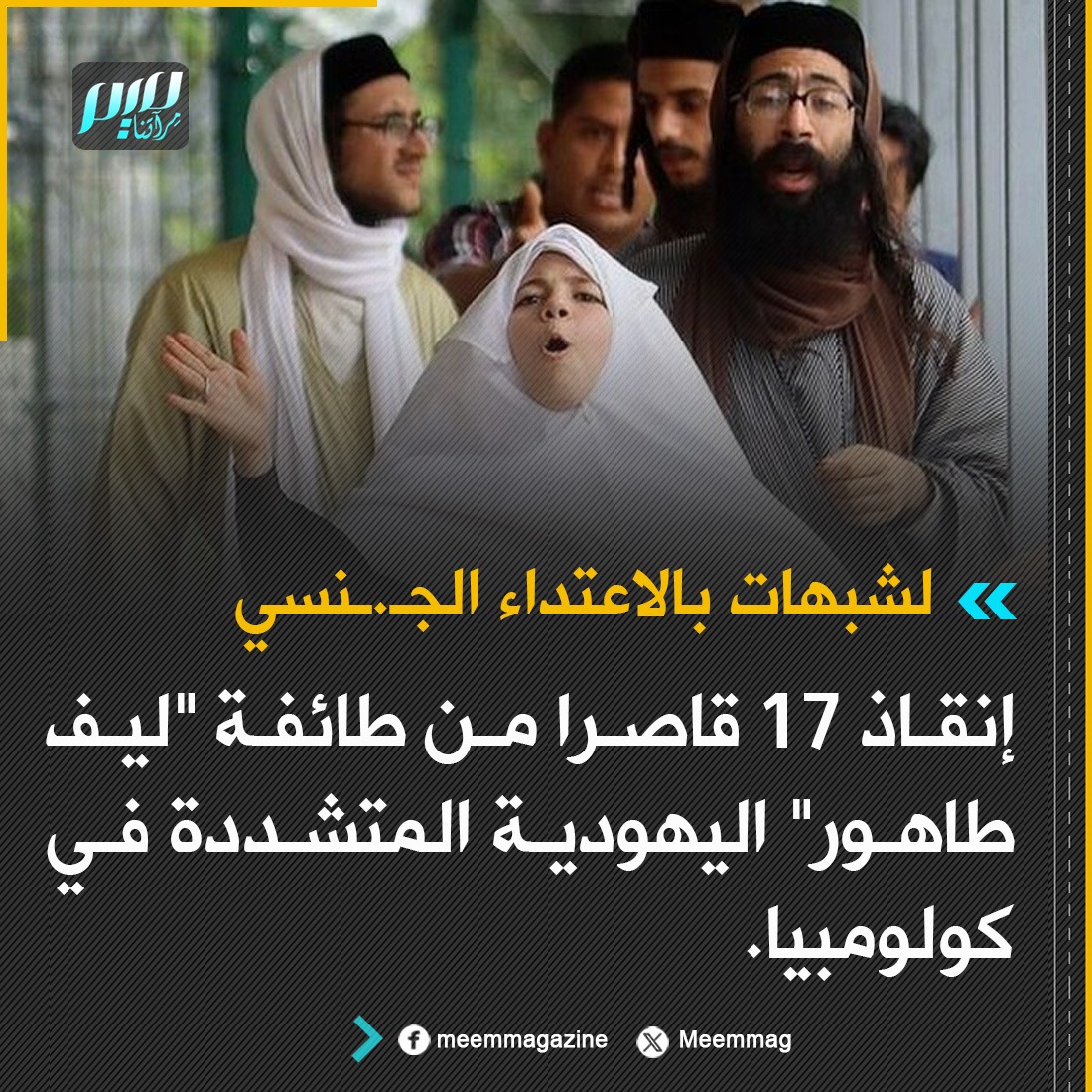 لشبهات بالاعتداء الجـ.ـنسي واستغلال الأطفال.. إنقاذ 17 قاصرا من طائفة "ليف طاهور" اليهودية المتشددة في كولومبيا، في عملية لوحدة مكافحة الاختطاف التابعة للجيش، بحسب بيان نشر عبر منصة "إكس".