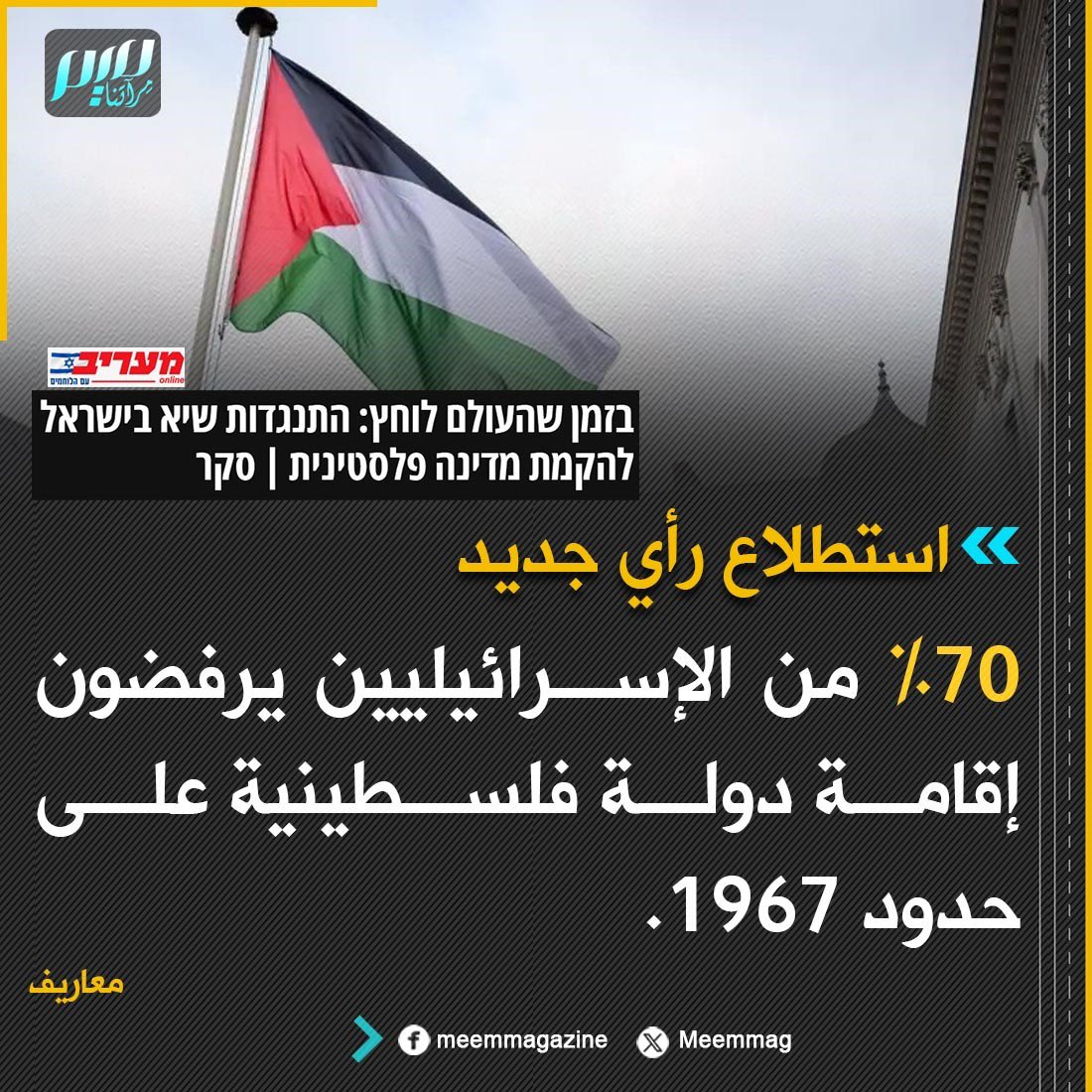 استطلاع رأي جديد: 70% من الإسرائيليين يرفضون إقامة دولة فلسطينية على حدود 1967.