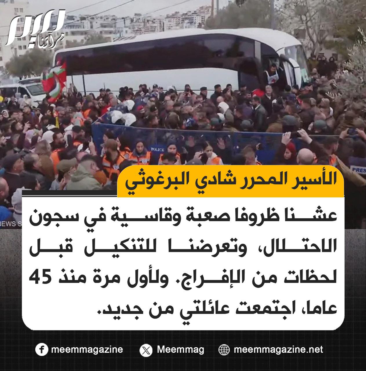 الأسير المحرر شادي البرغوثي: عشنا ظروفا صعبة وقاسية في سجون الاحتلال، وتعرضنا للتنكيل قبل لحظات من الإفراج. ولأول مرة منذ 45 عاما، تجتمع عائلتي من جديد.
