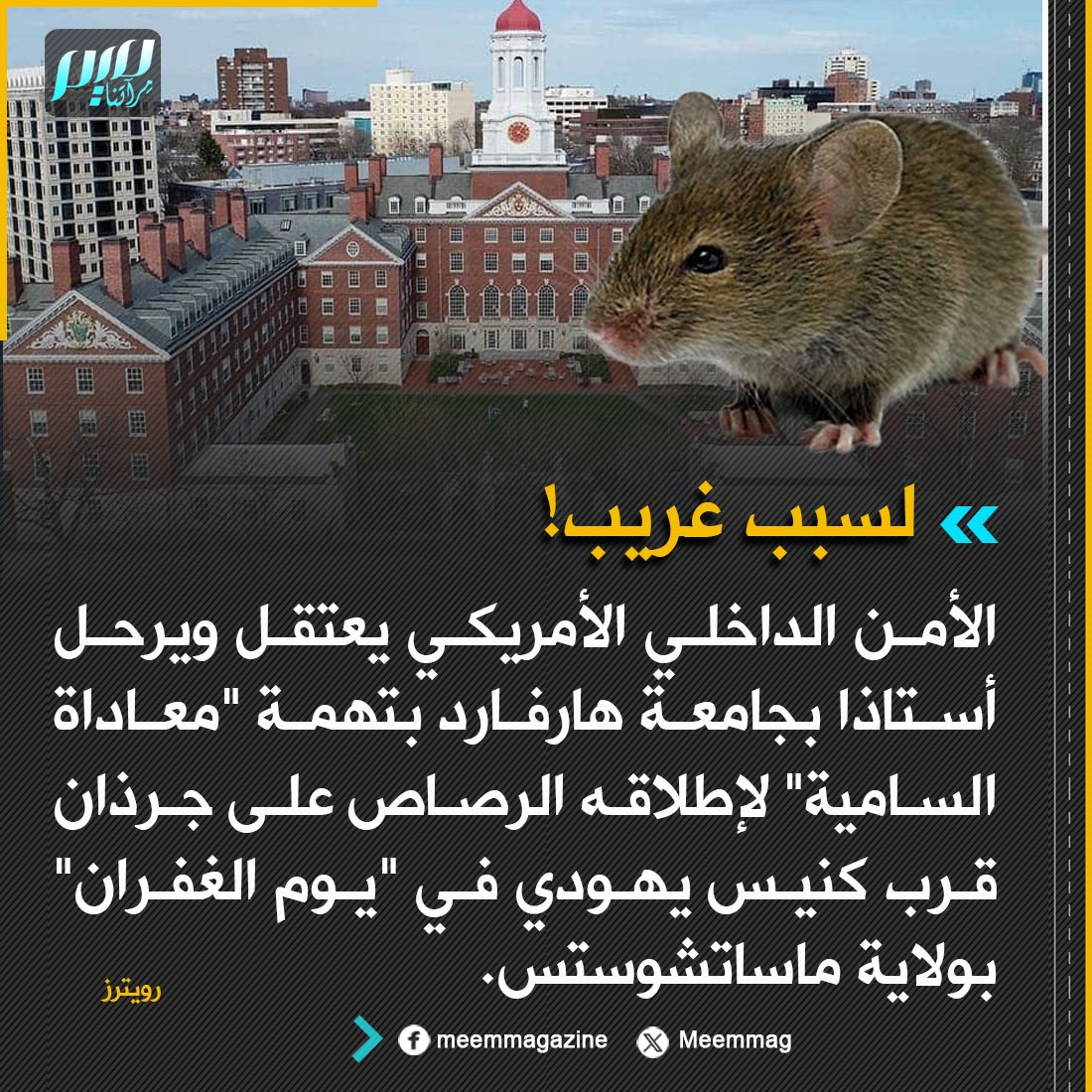 الأمن الداخلي الأمريكي يعتقل ويرحل أستاذا بجامعة هارفارد بتهمة "معاداة السامية" لإطلاقه الرصاص على جرذان قرب كنيس يهودي في "يوم الغفران" بولاية ماساتشوستس.