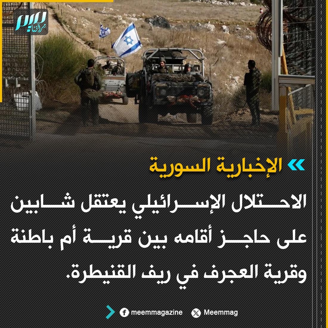 الإخبارية السورية: الاحتلال الإسرائيلي يعتقل شابين على حاجز أقامه بين قرية أم باطنة وقرية العجرف في ريف القنيطرة.