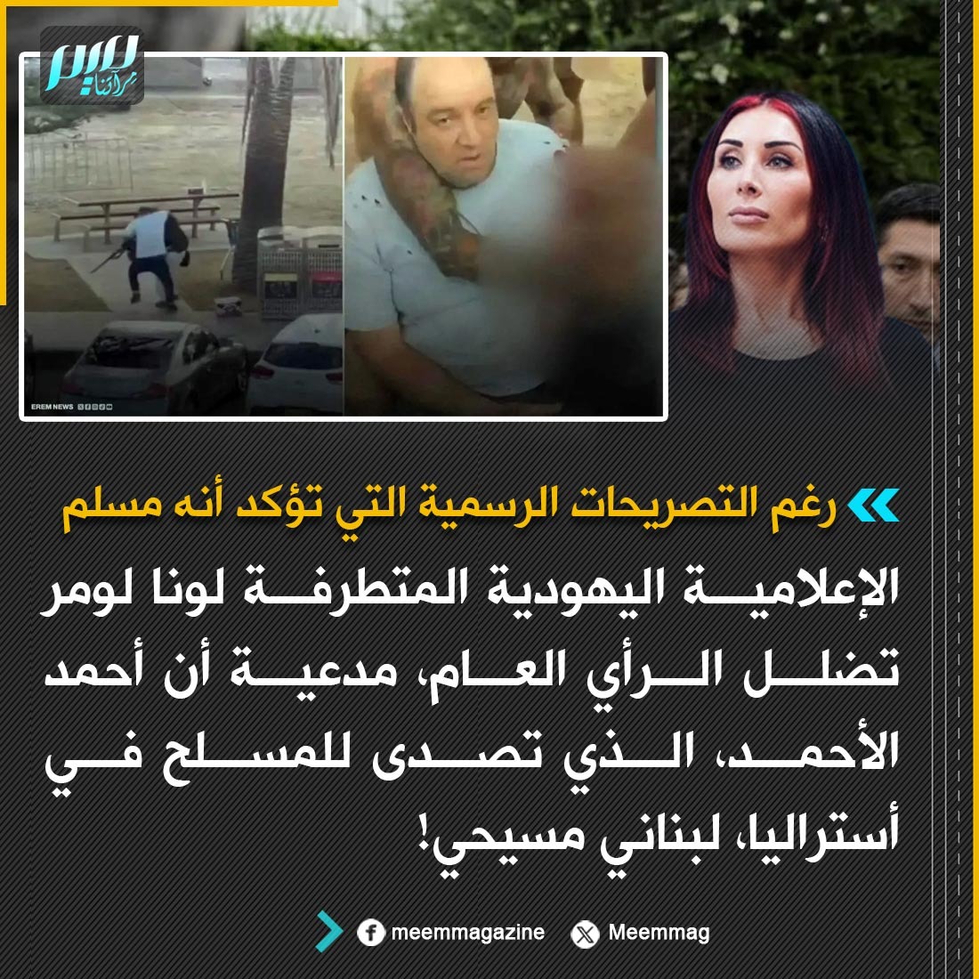 الإعلامية اليهودية المتطرفة لونا لومر تضلل الرأي العام، مدعية أن أحمد الأحمد، الذي تصدى للمسلح في أستراليا، لبناني مسيحي!