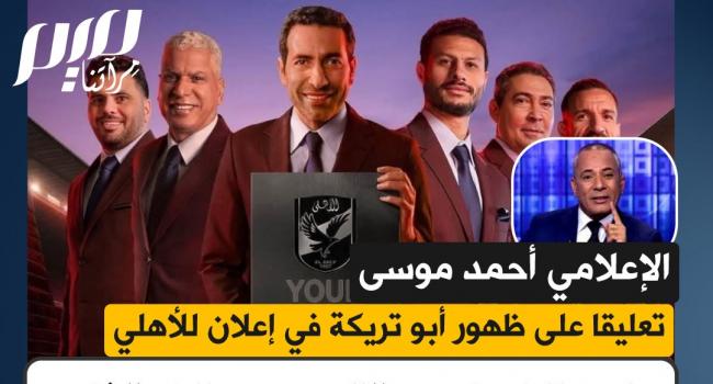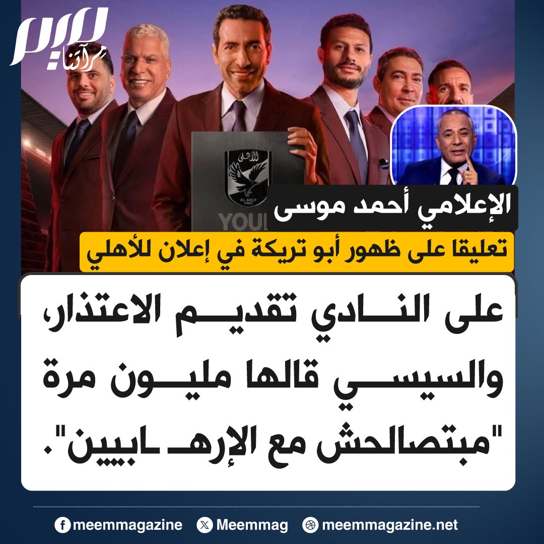 الإعلامي أحمد موسى تعليقا على ظهور أبو تريكة في إعلان للأهلي: على النادي تقديم الاعتذار، والسيسي قالها مليون مرة "مبتصالحش مع الإرهــ ـابيين".