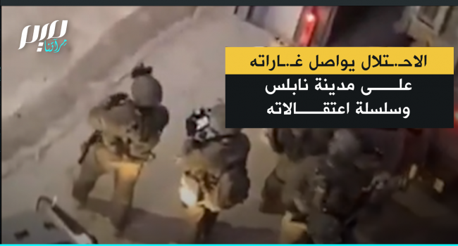 قوات الاحـ.ــتلال تواصل غـ.ـارتها على مدينة نابلس بالضفة الغربية، وتشن سلسلة اقتحامات وتعتقل شابا في شارع الباشا، فيما تحلق مروحية أباتشي على ارتفاع منخفض ويتم نشر التعزيزات.