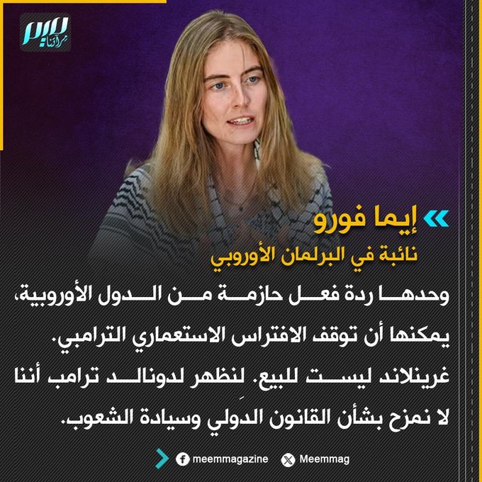 البرمانية الأوروبية إيما فورو: وحدها ردة فعل حازمة من الدول الأوروبية، يمكنها أن توقف الافتراس الاستعماري "الترامبي".