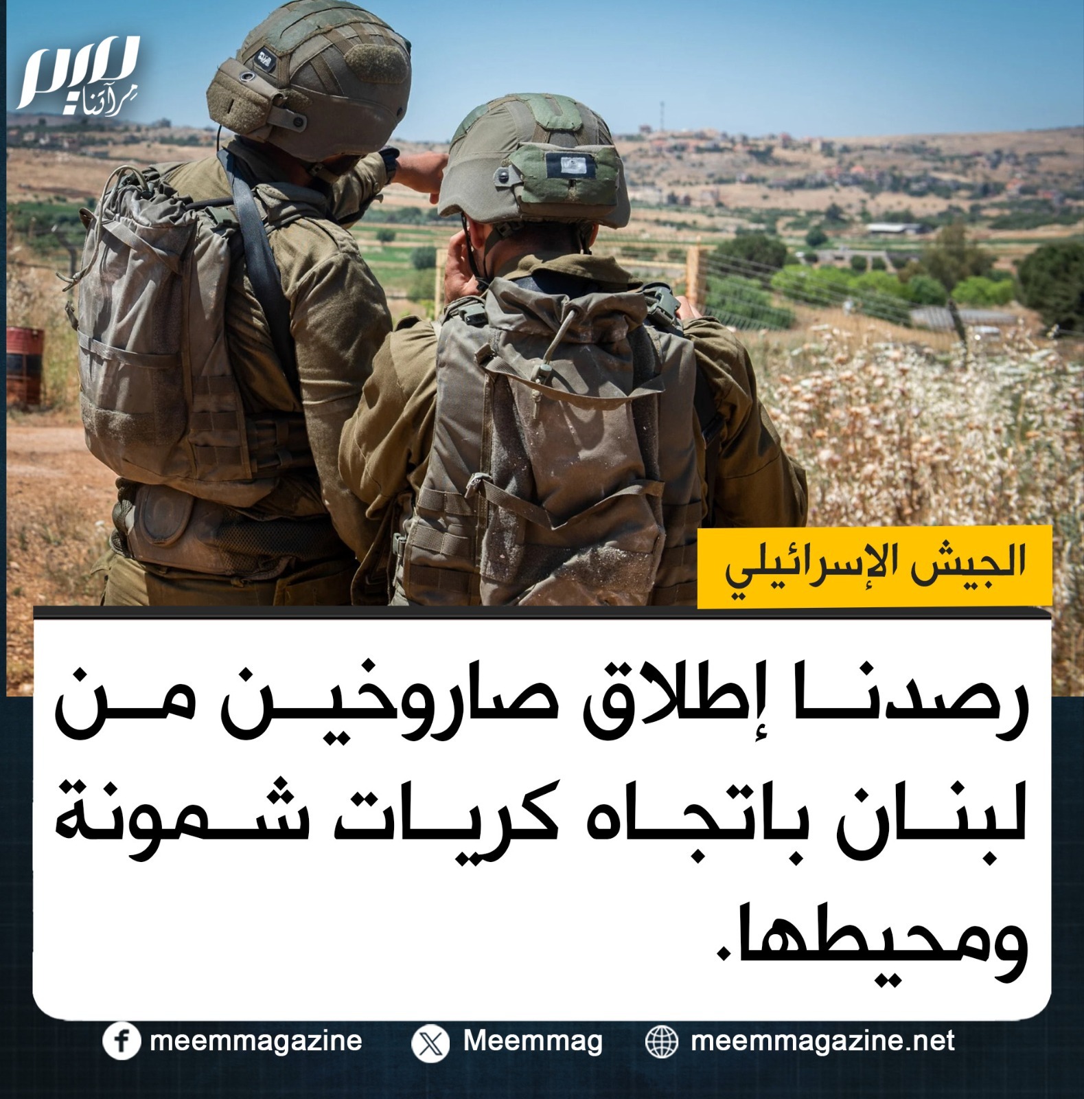 الجيش الإسرائيلي: رصدنا إطلاق صاروخين من لبنان باتجاه كريات شمونة ومحيطها.