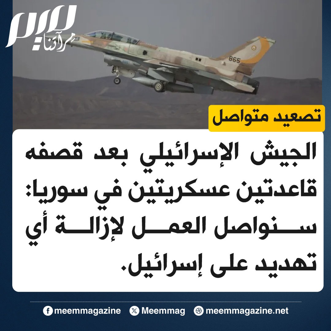 الجيش الإسرائيلي بعد قصفه قاعدتين عسكريتين في سوريا: سنواصل العمل لإزالة أي تهديد على إسرائيل.