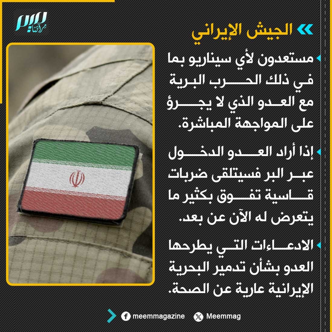 الجيش الإيراني: إذا أراد العدو الدخول عبر البر فسيتلقى ضربات قاسية تفوق بكثير ما يتعرض له الآن عن بعد.