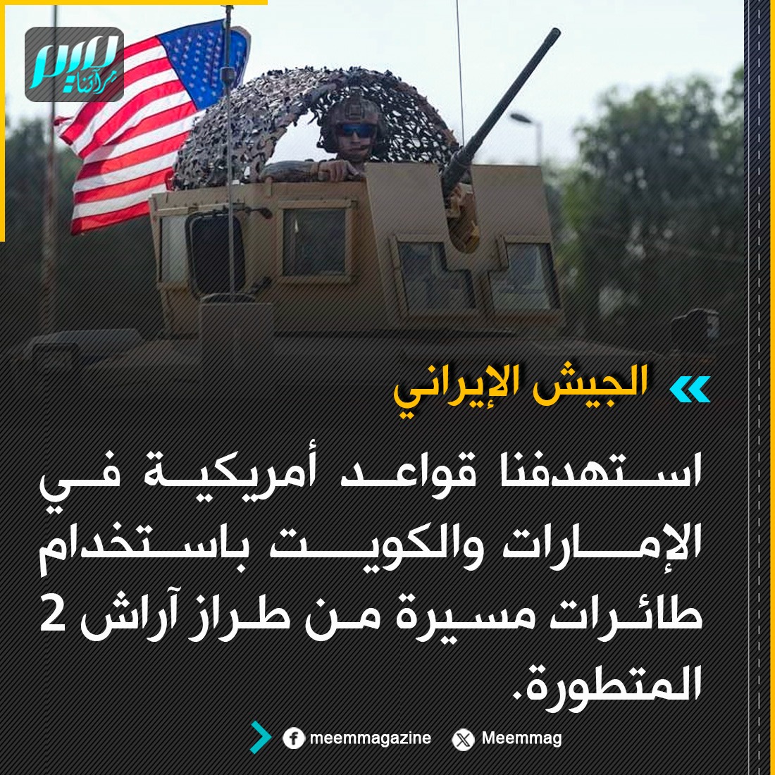 الجيش الإيراني: استهدفنا قواعد أمريكية في الإمارات والكويت باستخدام طائرات مسيرة من طراز آراش 2 المتطورة.