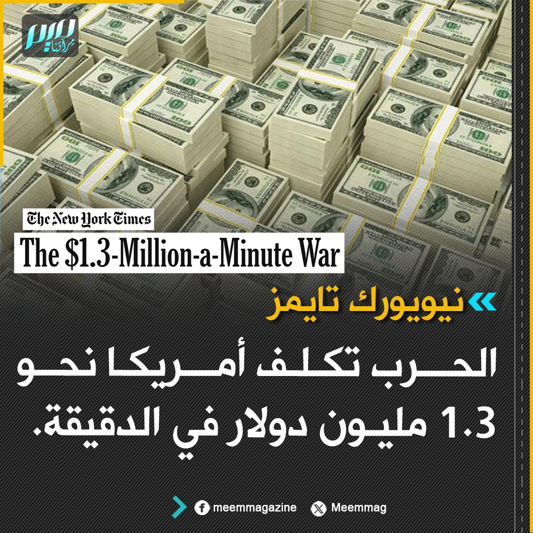 الحرب تكلف الولايات المتحدة نحو 1.3 مليون دولار في الدقيقة