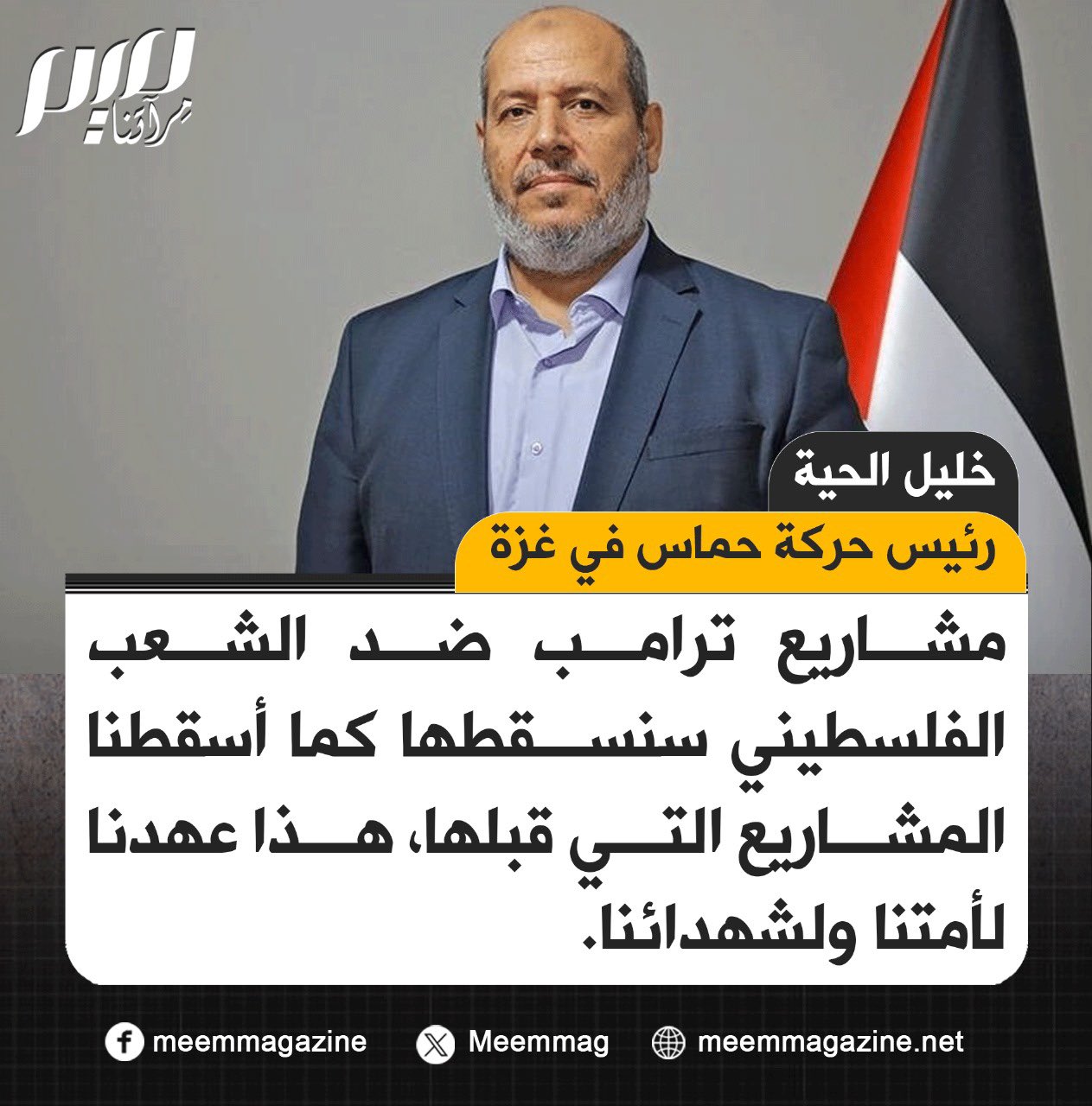 الحية: مشاريع ترامب ضد الشعب الفلسطيني سنسقطها كما أسقطنا المشاريع التي قبلها، هذا عهدنا لأمتنا ولشهدائنا.
