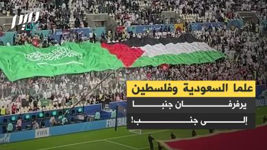 مشجعو المنتخب الأخضر السعودي يرفعون العلم الفلسطين…