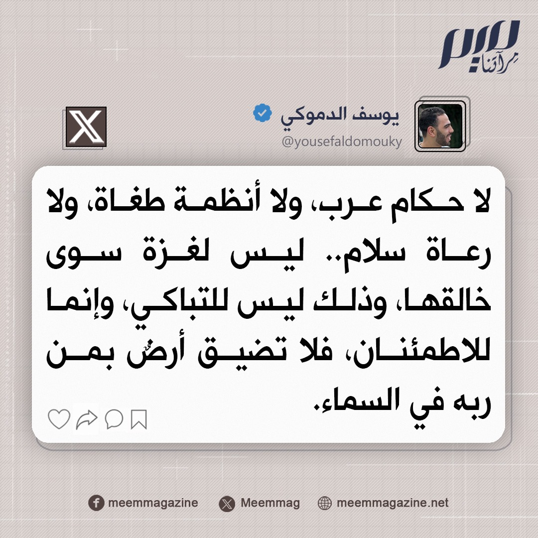 الدموكي: لا حكام عرب، ولا أنظمة طغاة، ولا رعاة سلام.. ليس لغزة سوى خالقها، وذلك ليس للتباكي، وإنما للاطمئنان، فلا تضيق أرضٌ بمن ربه في السماء.
