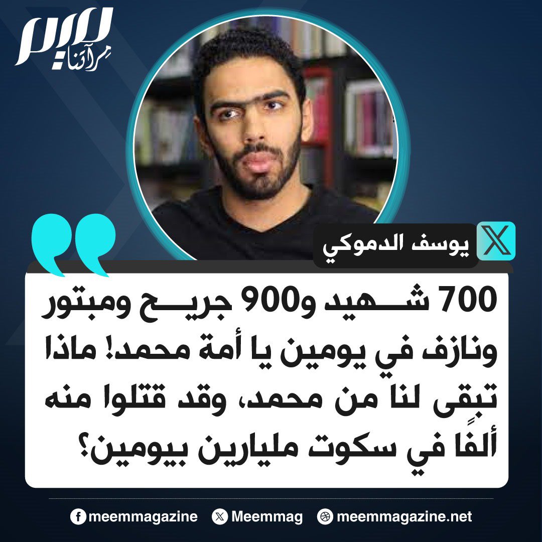 الدموكي: ماذا تبقى لنا من محمد، وقد قتلوا منه ألفًا في سكوت مليارين بيومين؟
