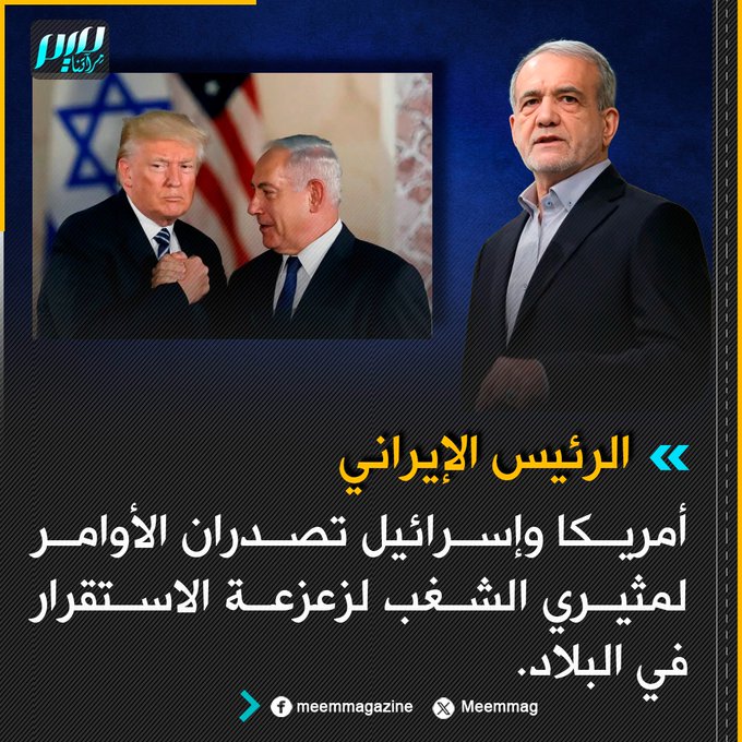 الرئيس الإيراني: أمريكا وإسرائيل تصدران الأوامر لمثيري الشغب لزعزعة الاستقرار في البلاد.