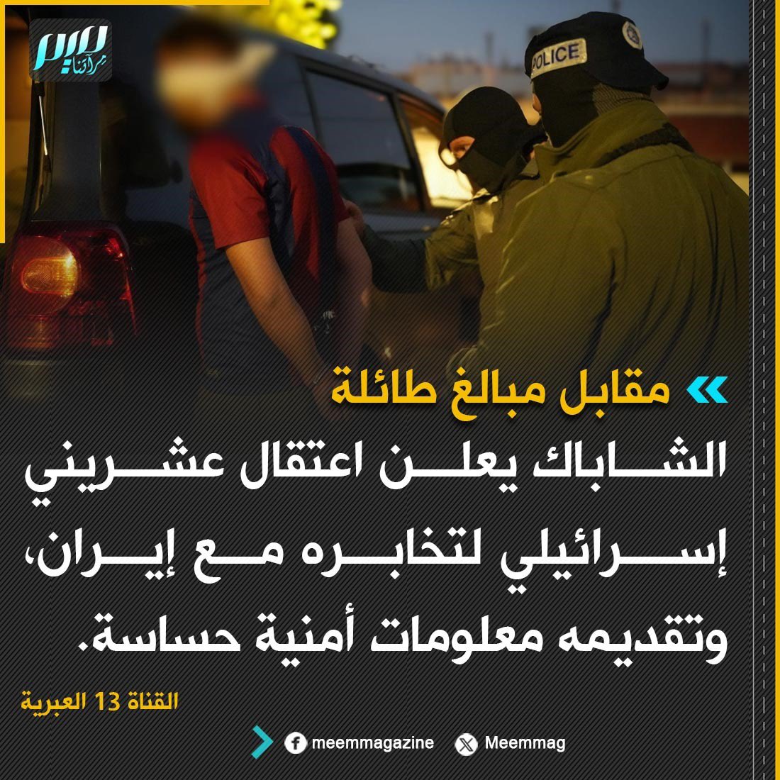 الشاباك يعلن اعتقال عشريني إسرائيلي لتخابره مع إيران، وتقديمه معلومات أمنية حساسة.