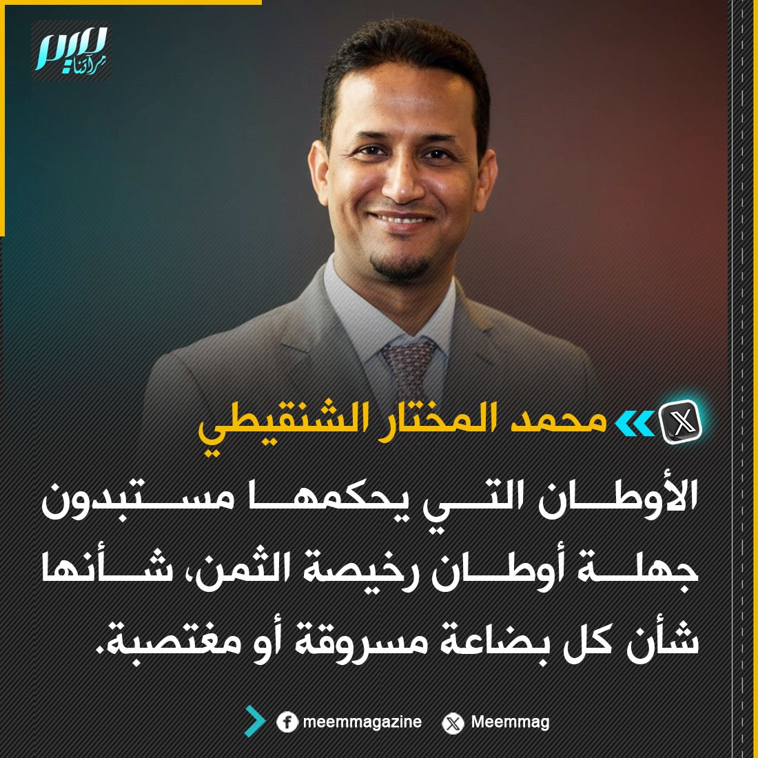 الشنقيطي: الأوطان التي يحكمها مستبدون جهلة أوطان رخيصة الثمن، شأنها شأن كل بضاعة مسروقة أو مغتصبة.