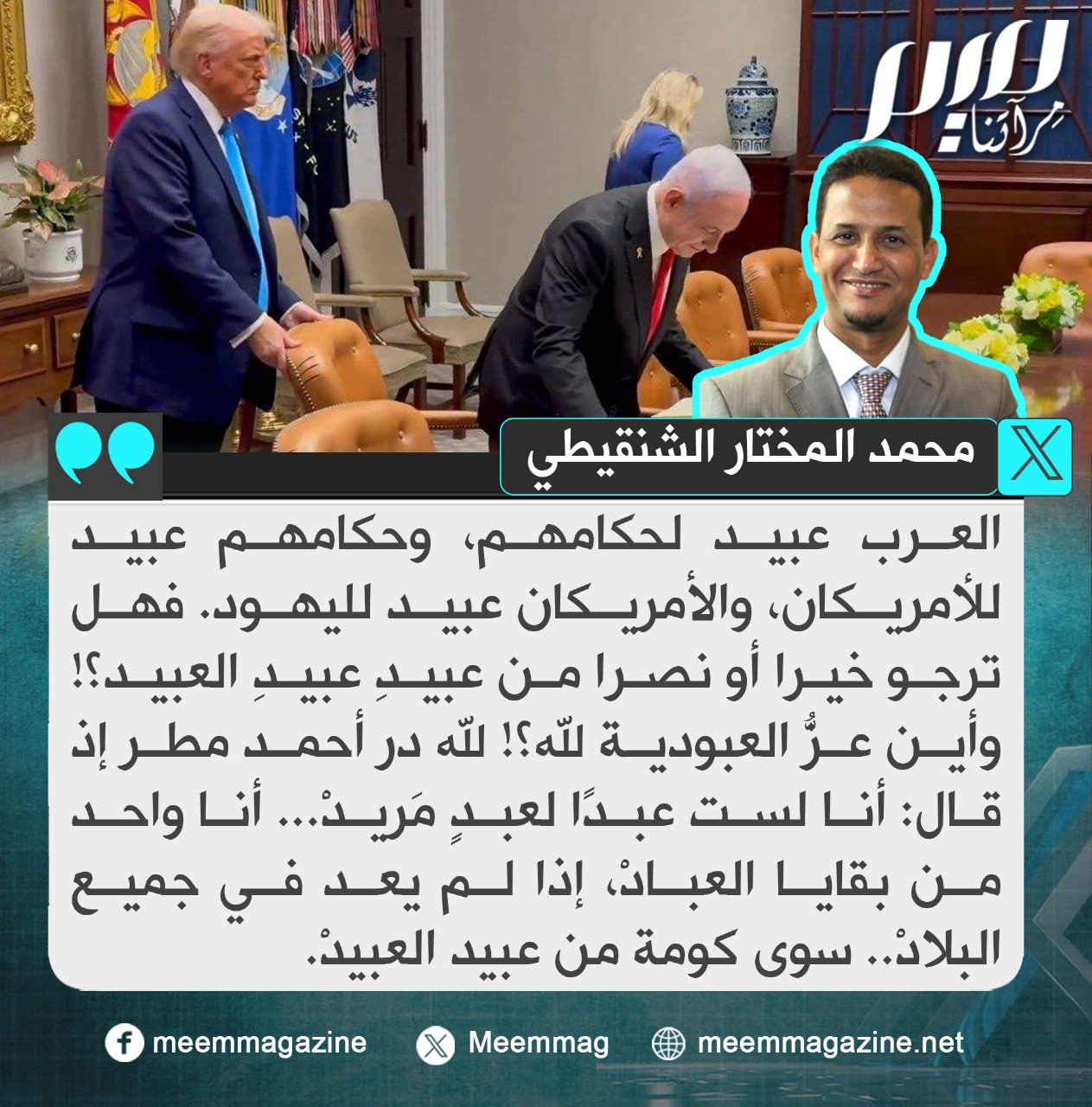 الشنقيطي: العرب عبيد لحكامهم، وحكامهم عبيد للأمريكان، والأمريكان عبيد لليهود. فهل ترجو خيرا أو نصرا من عبيدِ عبيدِ العبيد؟