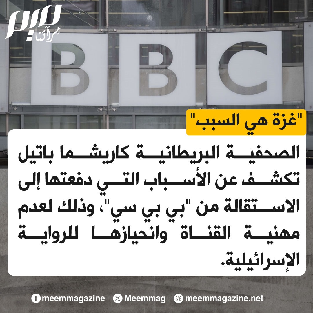 الصحفية البريطانية كاريشما باتيل تكشف عن الأسباب التي دفعتها إلى الاستقالة من "بي بي سي"، وذلك لعدم مهنية القناة وانحيازها للرواية الإسرائيلية.