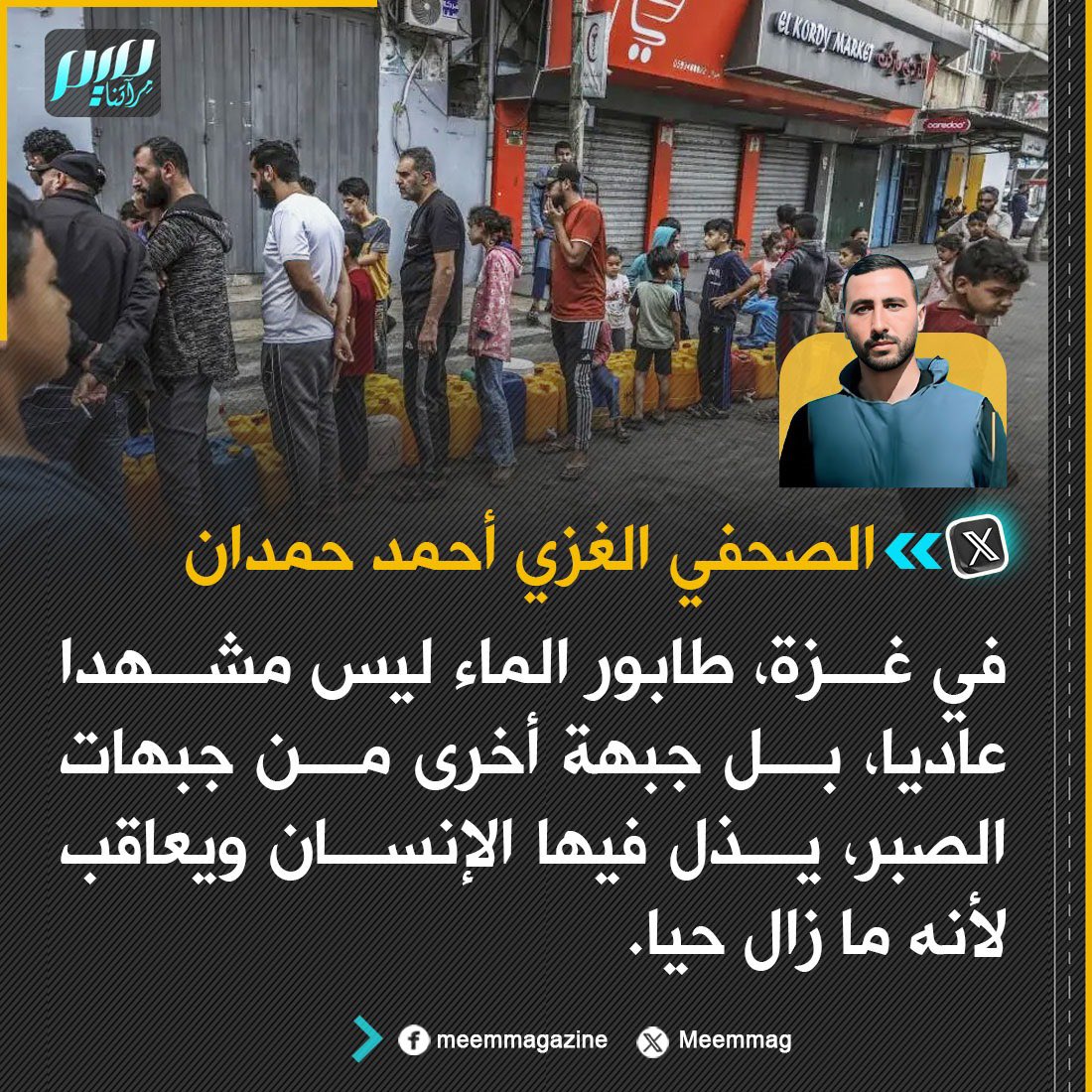 الصحفي الغزي أحمد حمدان: في غزة، طابور الماء ليس مشهدا عاديا، بل جبهة أخرى من جبهات الصبر، يذل فيها الإنسان ويعاقب لأنه ما زال حيًا.