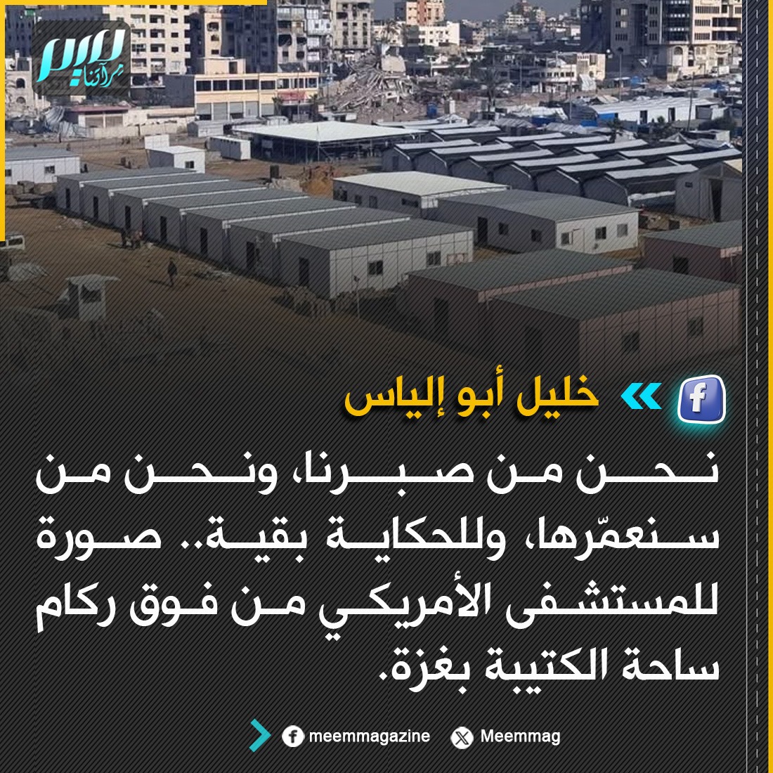 الصحفي الفلسطيني خليل أبو إلياس: نحن من صبرنا، ونحن من سنعمّرها، وللحكاية بقية.. صورة للمستشفى الأمريكي من فوق ركام ساحة الكتيبة بغزة.