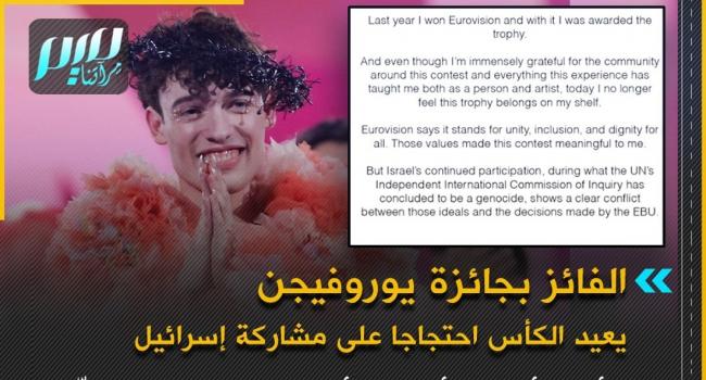 "لم أعد أشعر أن الكأس تنتمي إلى رفّي"..الفائز بجائزة يوروفيجن، السويسري نيمو ، يعيد الكأس احتجاجا على مشاركة إسرائيل!