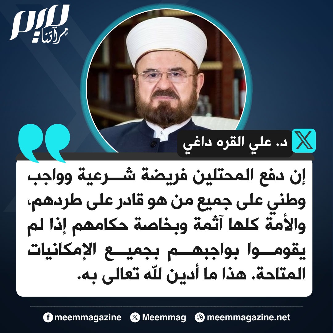 القره داغي: الأمة كلها آئمة وبخاصة حكامهم إذا لم يقوموا بواجبهم بجميع الإمكانيات المتاحة.