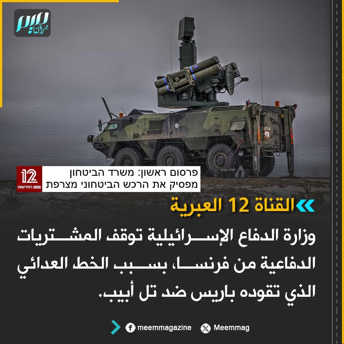 القناة 12 العبرية: وزارة الدفاع الإسرائيلية توقف المشتريات الدفاعية من فرنسا9