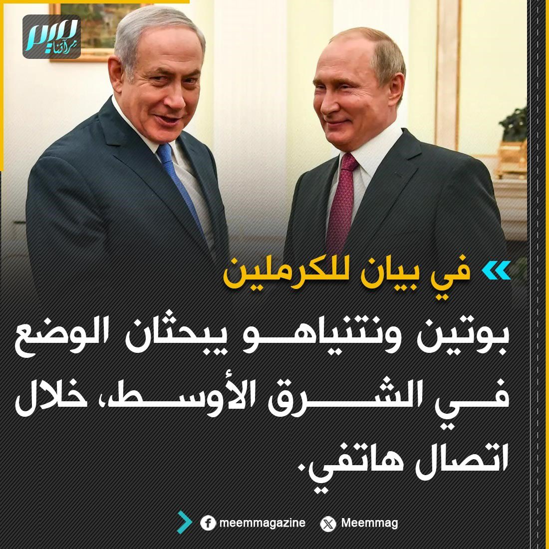 الكرملين: بوتين ونتنياهو يبحثان الوضع في الشرق الأوسط، خلال اتصال هاتفي، لاسيما الوضع المتعلق ببرنامج إيران النووي، والقضايا المرتبطة بتعزيز الاستقرار في سوريا.
