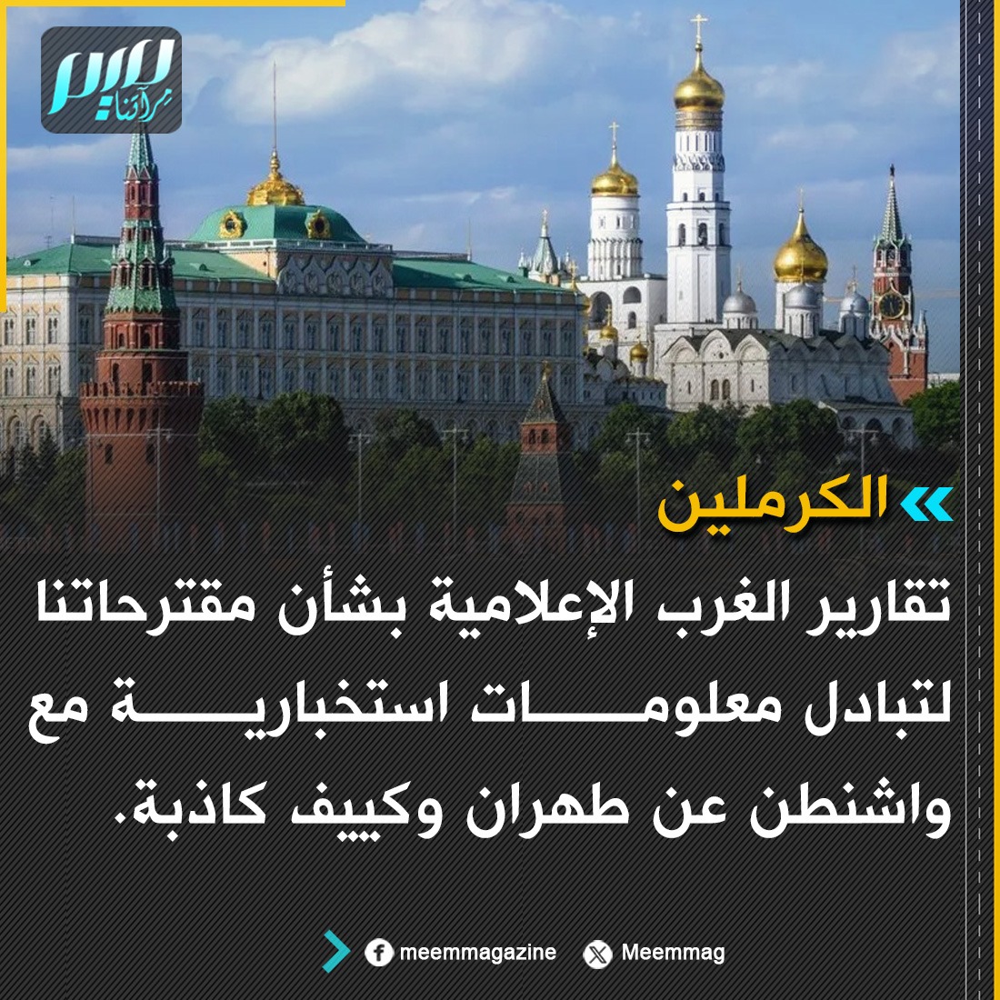 الكرملين: تقارير الغرب الإعلامية بشأن مقترحاتنا لتبادل معلومات استخبارية مع واشنطن عن طهران وكييف كاذبة