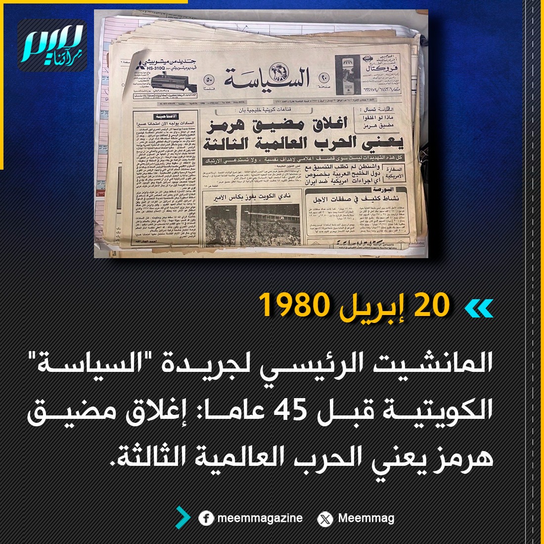 المانشيت الرئيسي لجريدة "السياسة" الكويتية قبل 45 عاما