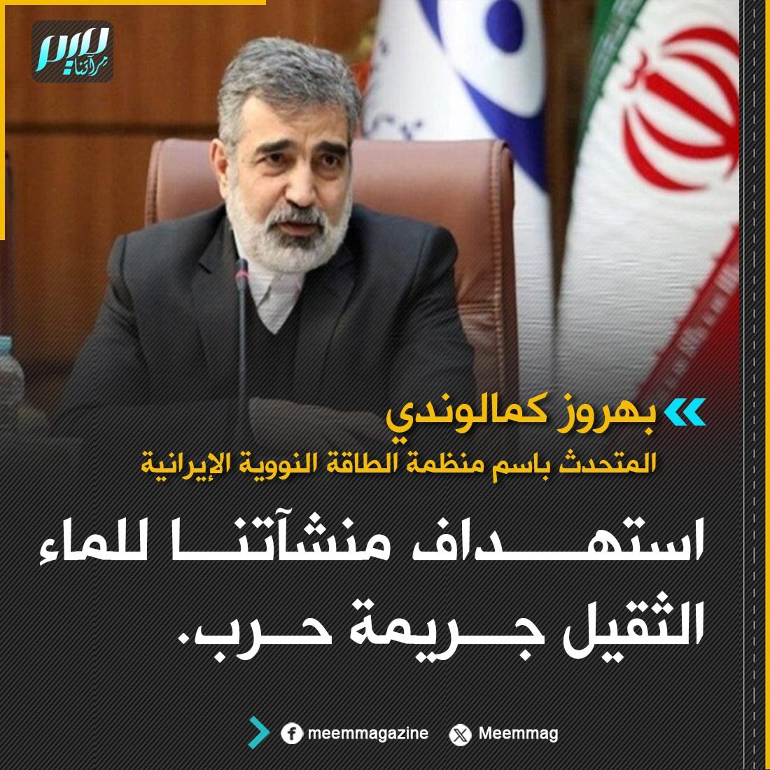المتحدث باسم منظمة الطاقة النووية الإيرانية: استهداف منشآتنا للماء الثقيل جريمة حرب.