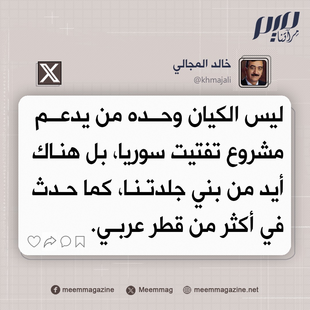 المجالي: ليس الكيان وحده من يدعم مشروع تفتيت سوريا، بل هناك أيد من بني جلدتنا، كما حدث في أكثر من قطر عربي.