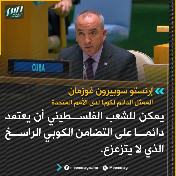 الممثل الدائم لكوبا لدى الأمم المتحدة: يمكن للشعب الفلسطيني أن يعتمد دائما على التضامن الكوبي الراسخ الذي لا يتزعزع.