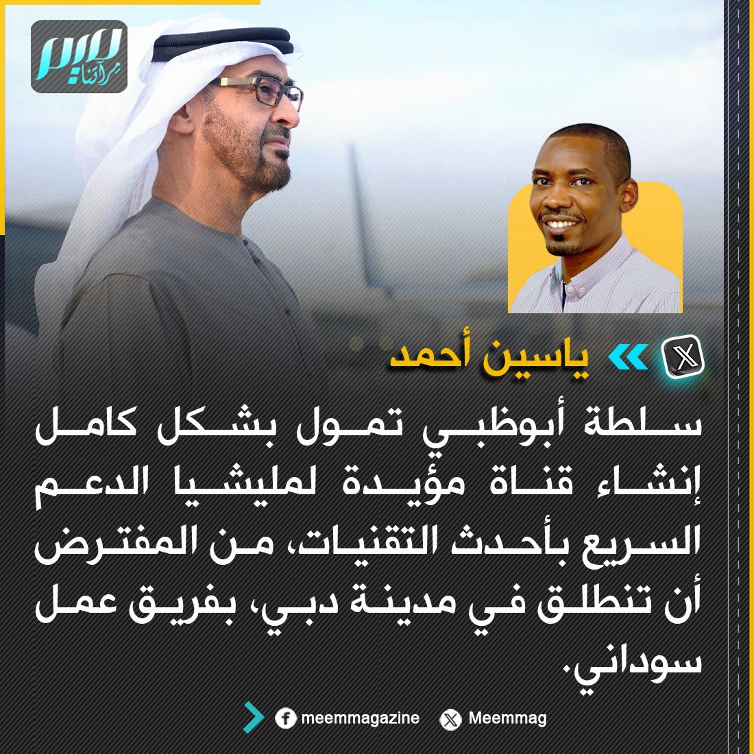 الناشط السوداني ياسين أحمد: سلطة أبوظبي تمول بشكل كامل إنشاء قناة مؤيدة لمليشيا الدعم السريع بأحدث التقنيات.