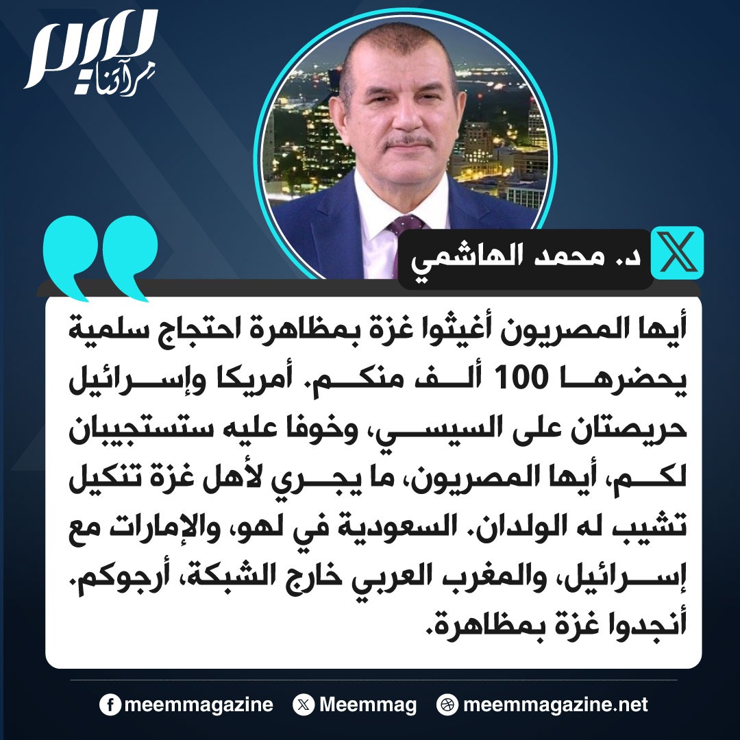 الهاشمي: أمريكا وإسرائيل حريصتان على السيسي، وستستجيبان لكم خوفًا عليه.