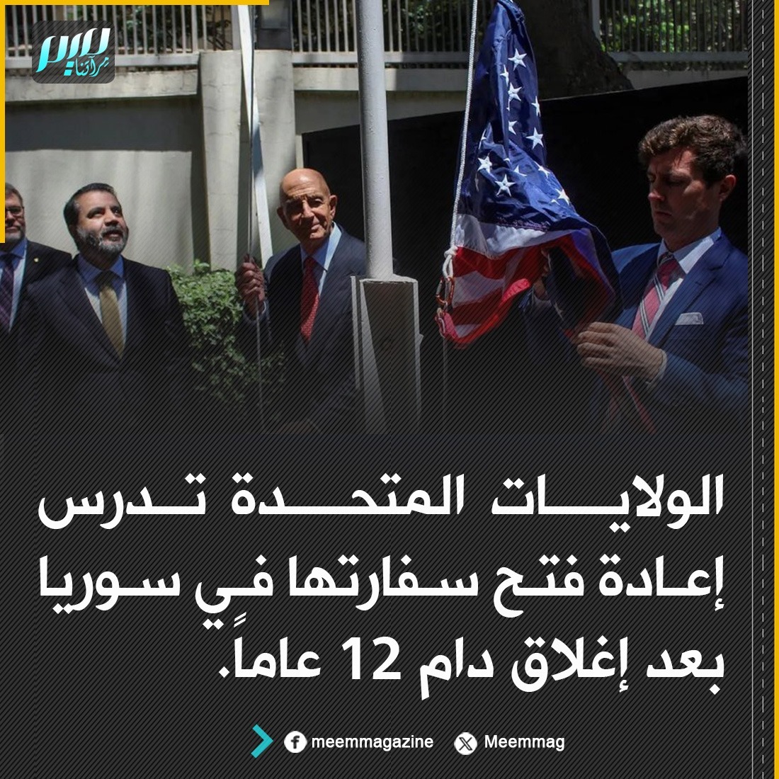 الولايات المتحدة تدرس إعادة فتح سفارتها في سوريا بعد إغلاق دام 12 عاماً.