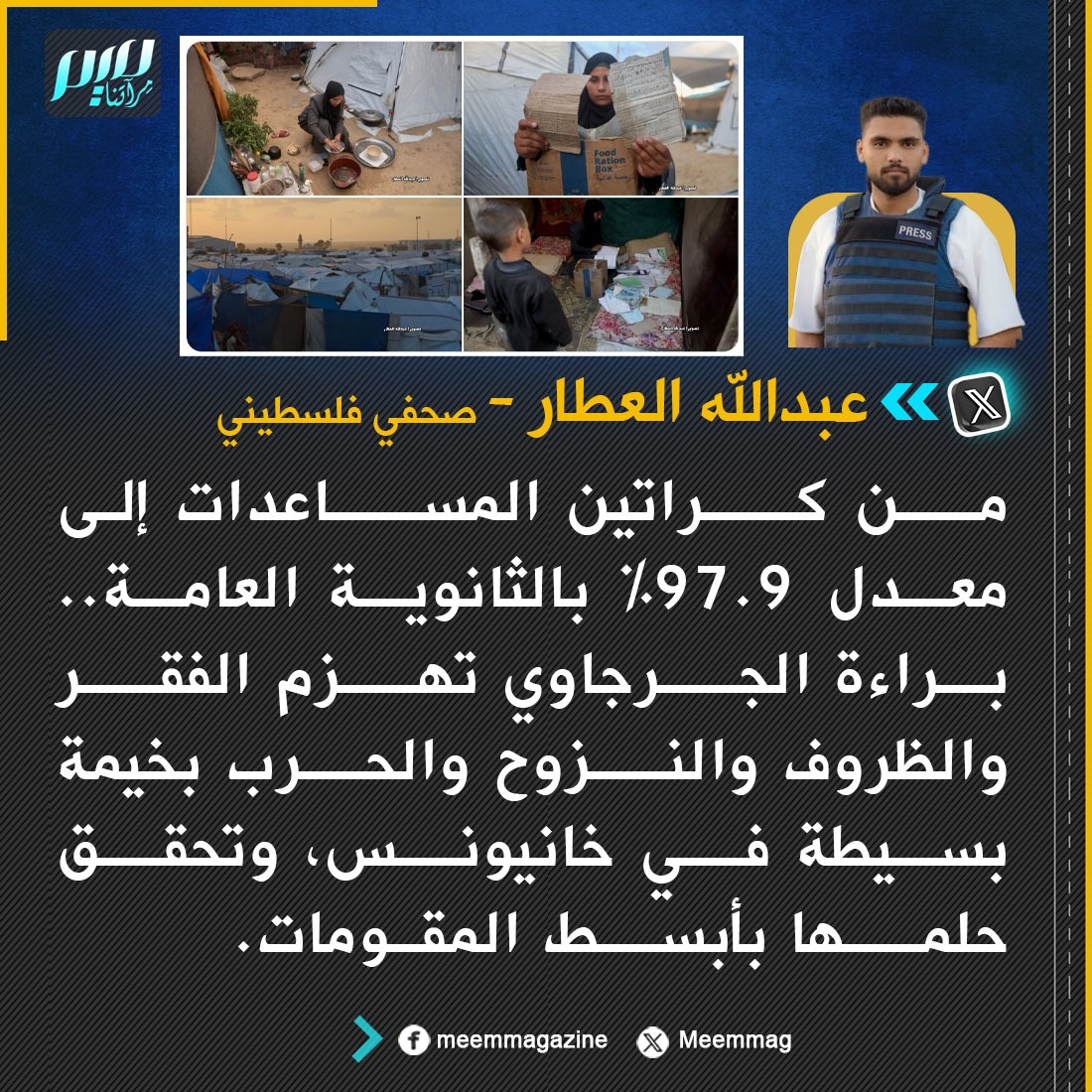 براءة الجرجاوي من كراتين المساعدات بغزة إلى معدل 97.9% بالثانوية العامة.