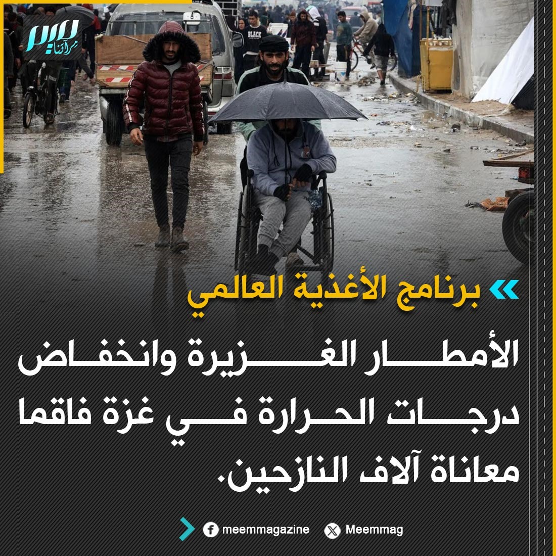 برنامج الأغذية العالمي: الأمطار الغزيرة وانخفاض درجات الحرارة في غزة فاقما معاناة آلاف النازحين.