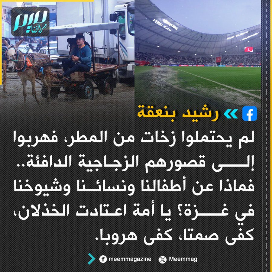 المدون المغربي رشيد بنعقة: لم يحتملوا زخات من المطر، فهربوا إلى قصورهم الزجاجية الدافئة.. فماذا عن أطفالنا ونسائنا وشيوخنا في غزة؟ يا أمة اعتادت الخذلان، كفى صمتا، كفى هروبا.